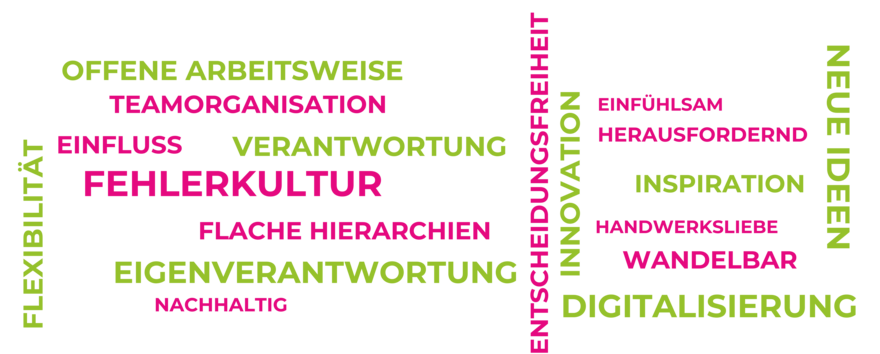 Unsere Werte durchdringen all unsere Tätigkeiten. Wir gehen den Extrameter für unsere Kunden und sind bekannt für individuelle Lösungen. Dabei schätzen wir die hohe Verantwortung und die Freiheit in unseren Teams. Unsere Innovationskraft reicht aber über Dienstleistungen hinaus – sie spiegelt sich in flexibler Arbeitsweise und New Work-Arbeitsbereichen wider.